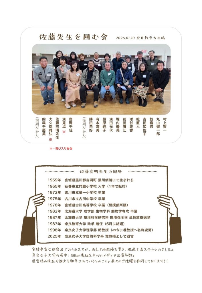 2026年1月10日(土) 奈良教育大学生協で開催しました「佐藤先生を囲む会」の様子をアップロードいたしました(二次会は、佐藤先生のご自宅)。